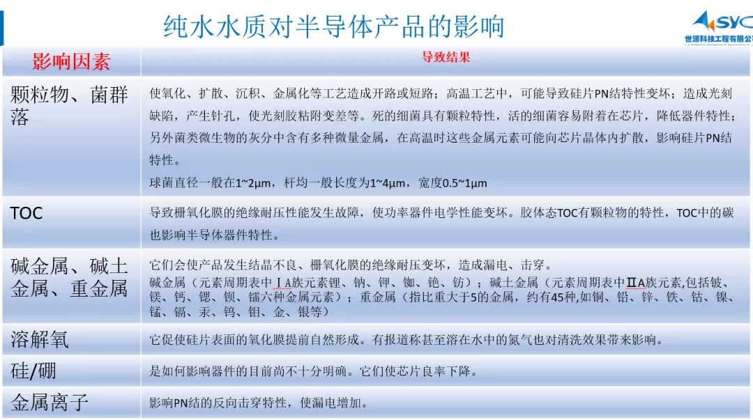 詳細見圖,總之,水不夠純凈,就做不成合格的高端芯片。芯片越高端,所需純水的純度就越高。